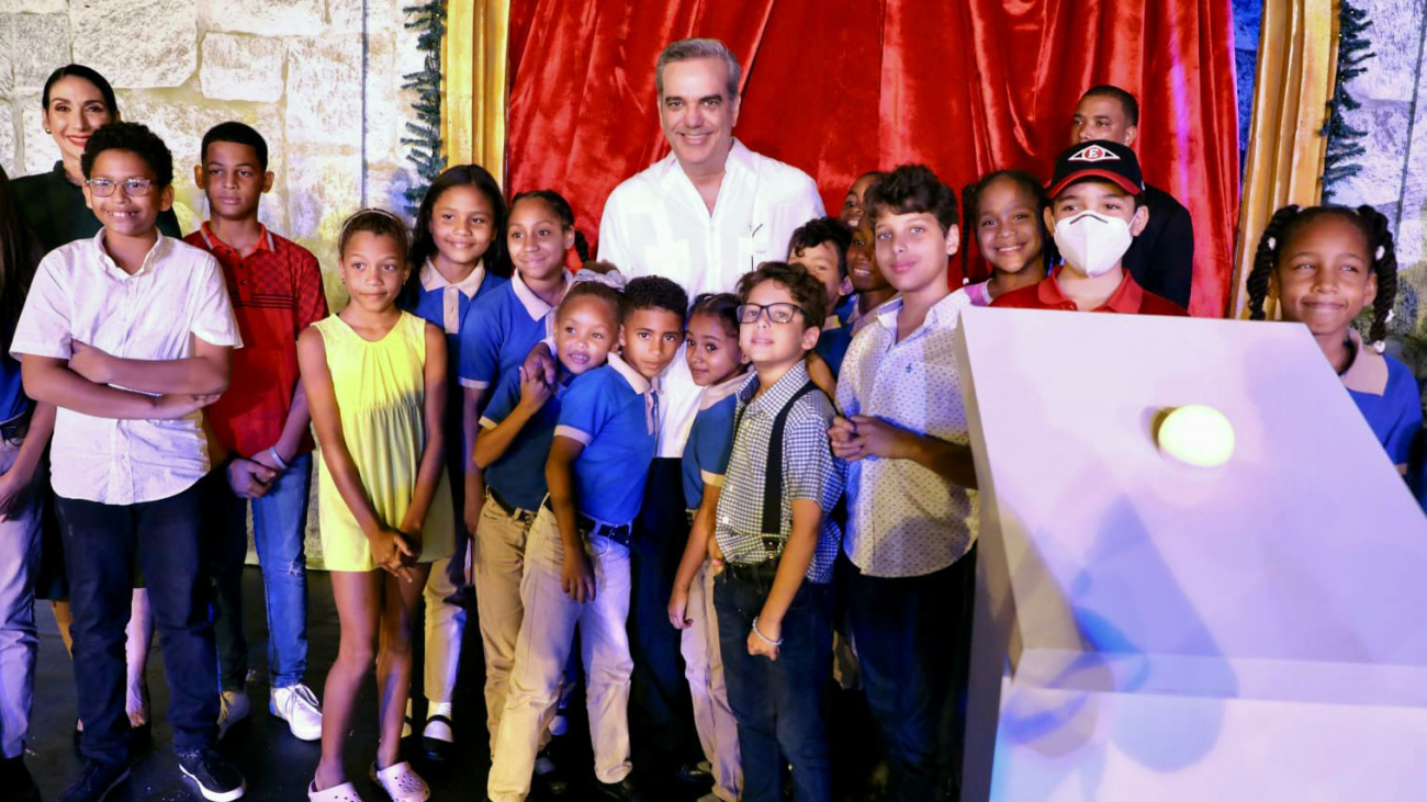 Abinader estuvo acompañado de la primera dama, Raquel Arbaje; los ministros Joel Santos y José Ignacio Paliza, el Administrador del Banco de Reservas, Samuel Pereyra, la alcaldesa Carolina Mejía y un grupo de niños.