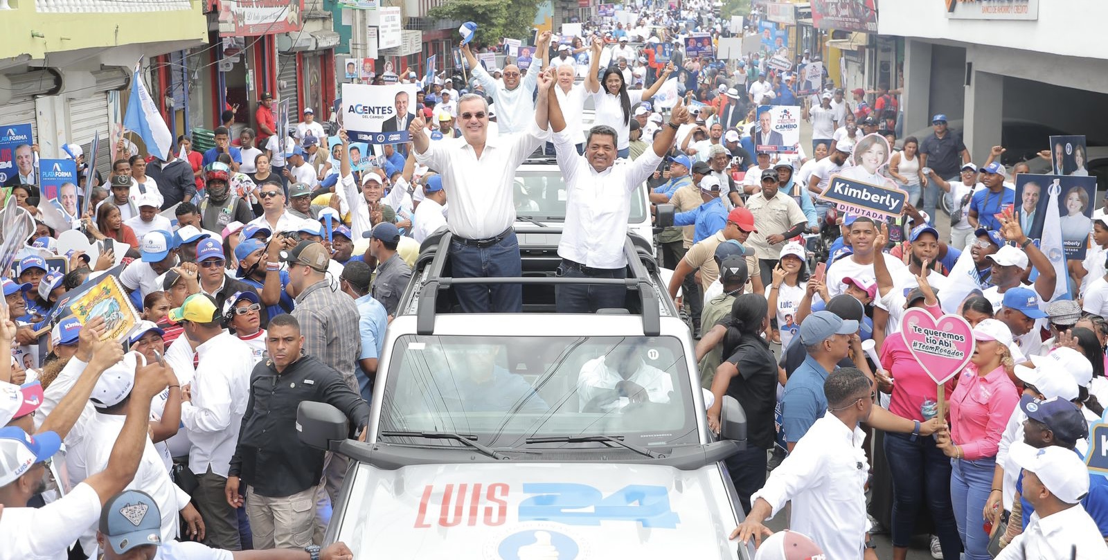 Luego de Los Alcarrizos, Abinader tomó rumbo al municipio de Santo Domingo Oeste, donde acompañó al candidato a la alcaldía Francisco Peña.