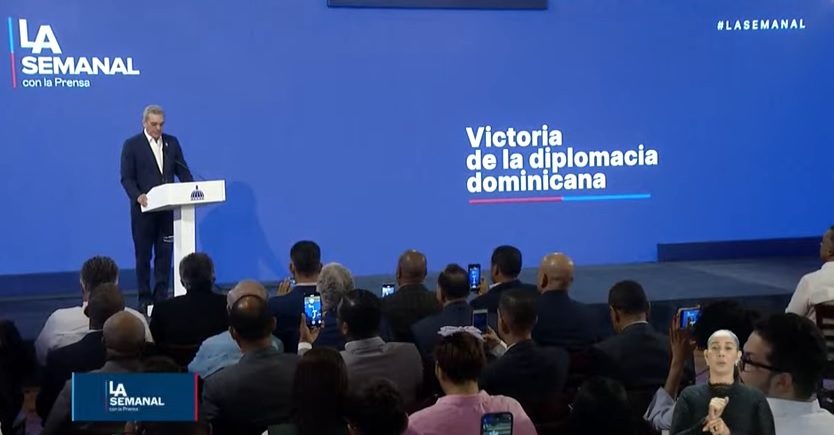 Antes de comenzar la rueda de prensa, se emitió un fragmento de la intervención que Luis Abinader realizó ante el Consejo de Seguridad de la ONU en septiembre de 2021 sobre la problemática de Haití, reiterando la idea de que República Dominicana no es la solución a la situación en el país vecino.