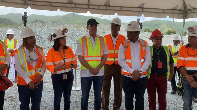 El presidente Luis Abinader visitó este jueves la mina Cerro Maimón, en esta provincia, donde desde el pasado domingo hay dos mineros atrapados tras un derrumbe.
