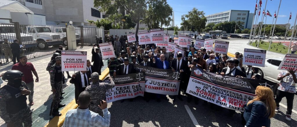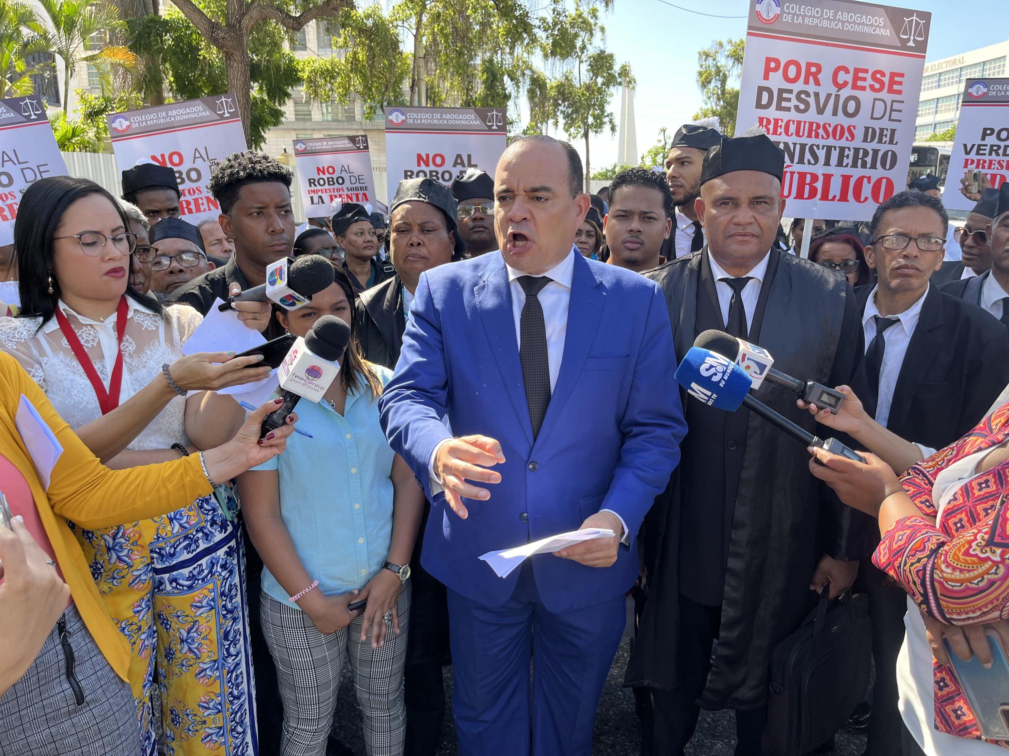 La manifestación estuvo encabezada por el presidente del gremio, Miguel Surun Hernández, quien dijo que de mantenerse dicha asignación igual sería un grave atentado a la administración de justicia en la República Dominicana, que se encuentra en una grave crisis por la ausencia de jueces, fiscales y personal suficiente para responder a la demanda de servicios de la ciudadanía, generando un retardo fatal en las decisiones judiciales qué se refleja en una alta tasa de mora judicial, procesos penales interminables.