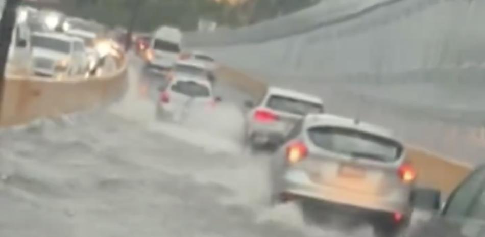 Uno de los lugares donde por igual se concentró mucha agua fue en el paso a desnivel de la avenida 27 de Febrero con la Máximo Gómez, el cual dificultó el paso de los vehículos debido a sus lentos desplazamientos.
