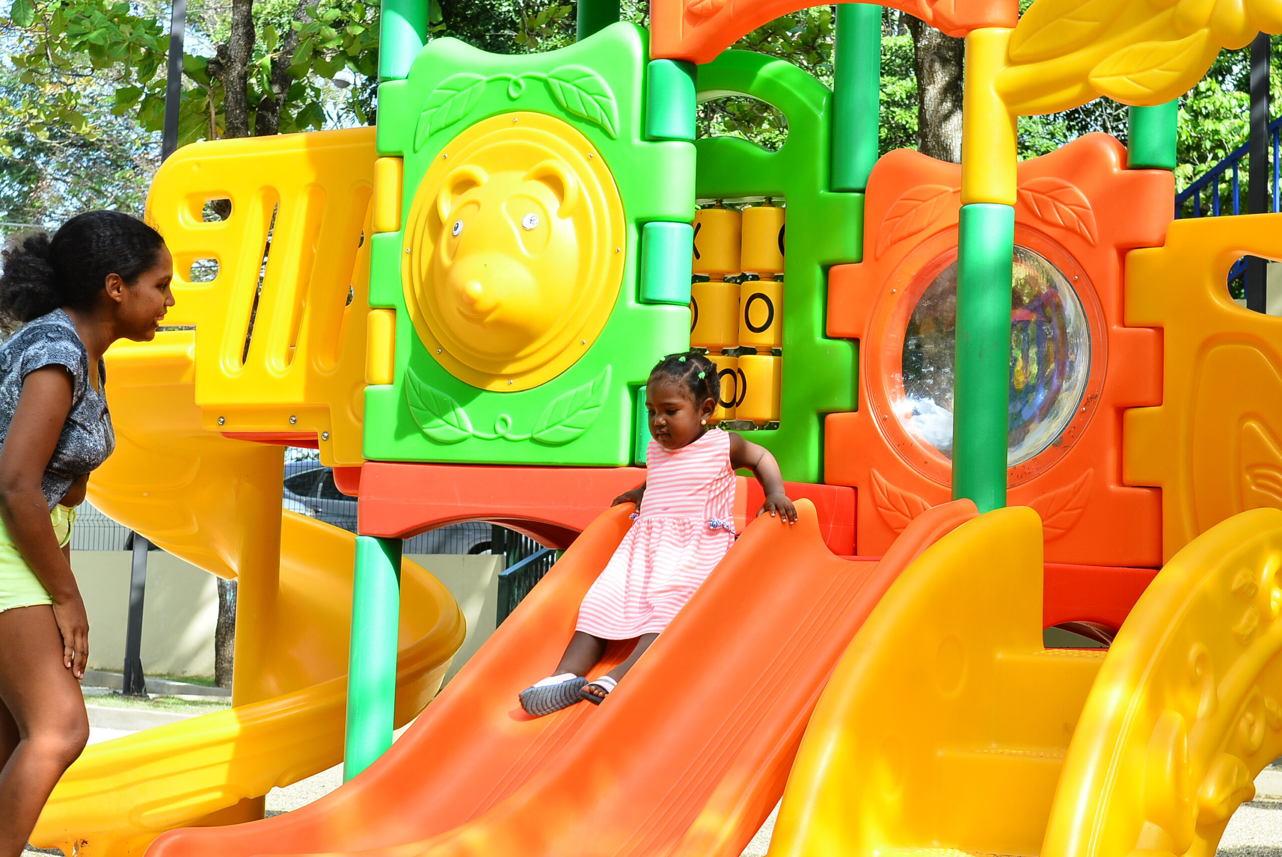 La Dirección de Ingeniería de la entidad financiera también colocó una nueva verja perimetral, dos puertas de acceso y se encargó de la iluminación, con el fin de ofrecer seguridad y privacidad al parque, cuya superficie ronda los 1,990 metros cuadrados en la avenida Hermanas Mirabal.