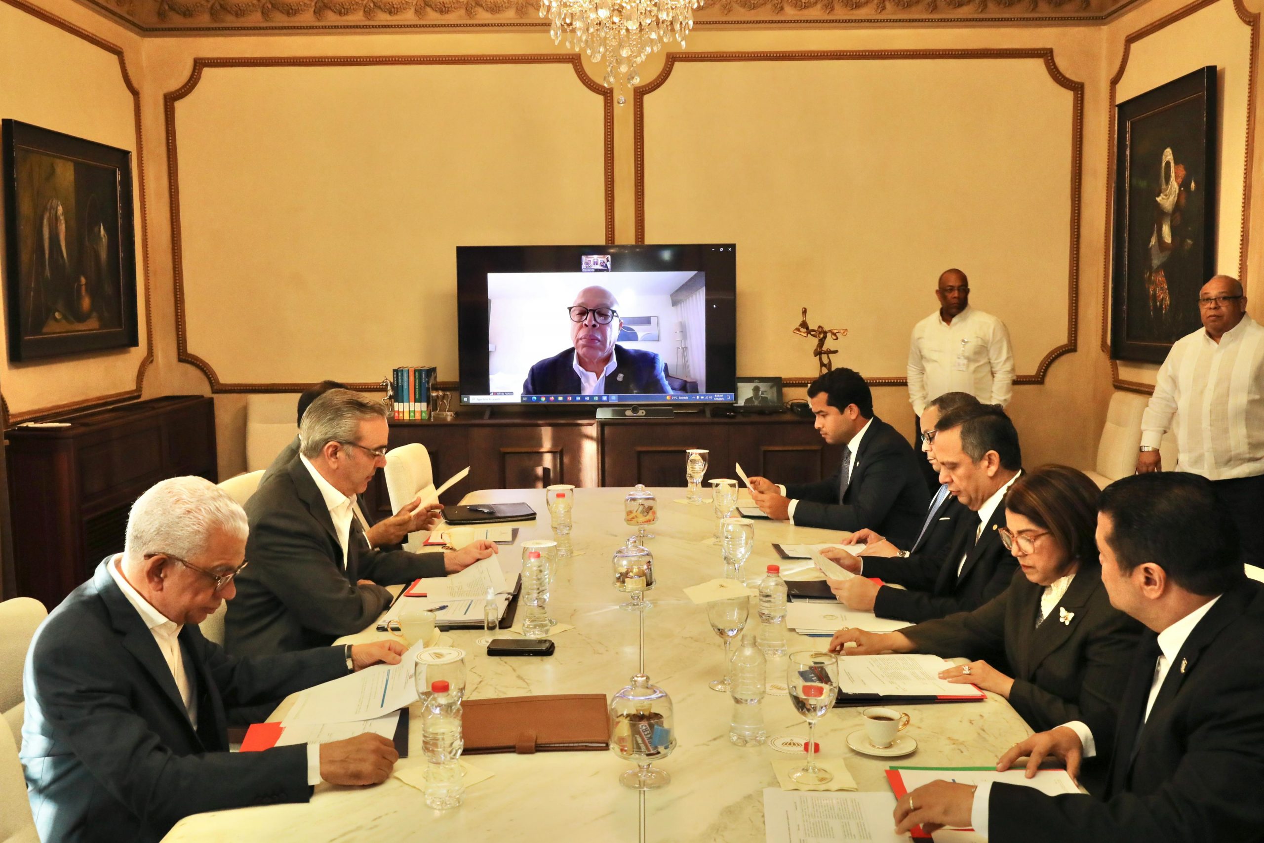 En la reunión participaron, además, el mandatario Luis Abinader y los presidentes de la Suprema Corte de Justicia, Luis Henry Molina; del Tribunal Constitucional, Napoleón Estévez Lavandier; del Senado, Ricardo de los Santos, y de la Cámara de Diputados, Alfredo Pacheco (vía zoom), así como el senador Omar Fernández y el diputado Tobías Crespo.