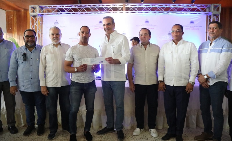 En el acto recibieron el pago de manos del presidente Abinader los agricultores Abraham Beltré García, Alberto Durán De La Rosa, Alcides Núñez, Alexis Pujols Cabrera y Ayendi Durán Rodríguez.
