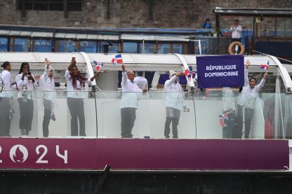 PARÍS, Francia. Ataviada con chacabana, pantalones y zapatos negros, la delegación dominicana se paseó este viernes con la bandera nacional ondeando por los aires, en el mítico río Sena, de esta ciudad, en la inédita ceremonia de inauguración de los XXXIII Juegos Olímpicos en esta ciudad.