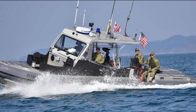 Una vez en la escena, la tripulación de un buque de los guardacostas observó a los ocupantes del barco sospechoso arrojar varios fardos por la borda.