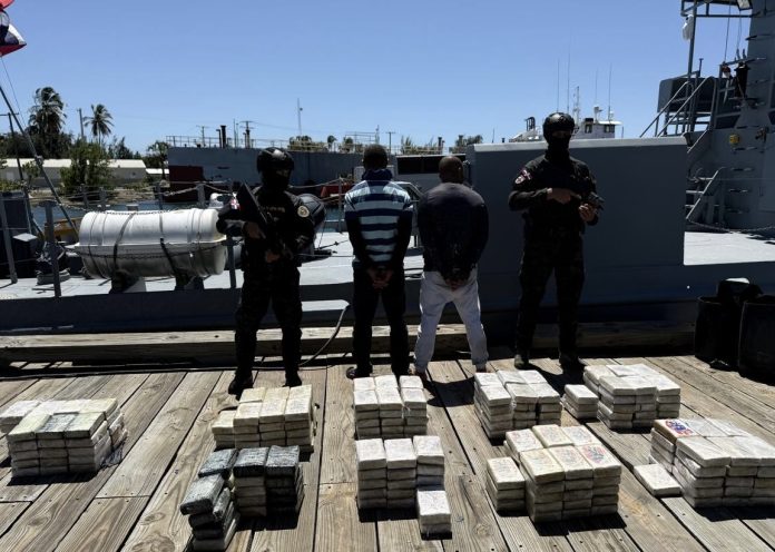 El alijo era transportado en una embarcación tripulada por dos hombres e interceptada cerca de las costas del Baní.