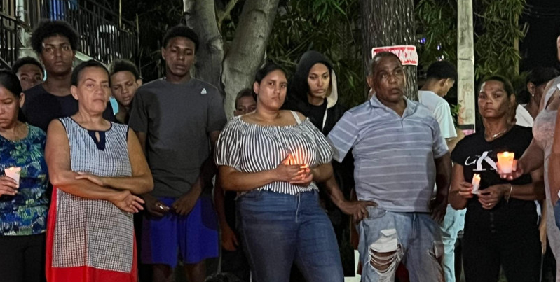 48 horas después de la trágica noche en la que al comerciante Denny Luis Silverio Ramírez, de 52 años, le cegaron la vida a punta de pistola, familiares y vecinos se reunieron con velas frente a las puertas del colmado ubicado en el Ensanche Quisqueya, hoy cerradas, para clamar justicia.