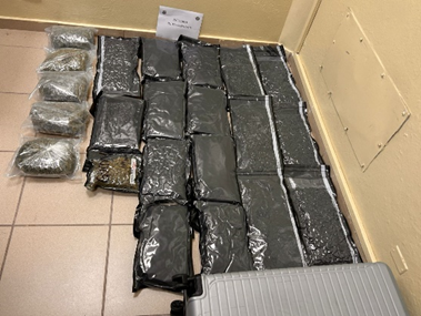 Las autoridades detectaron sustancias extrañas dentro del equipaje de una ciudadana estadounidense de 19 años de edad, y en presencia de un fiscal procedieron a abrir la maleta.
