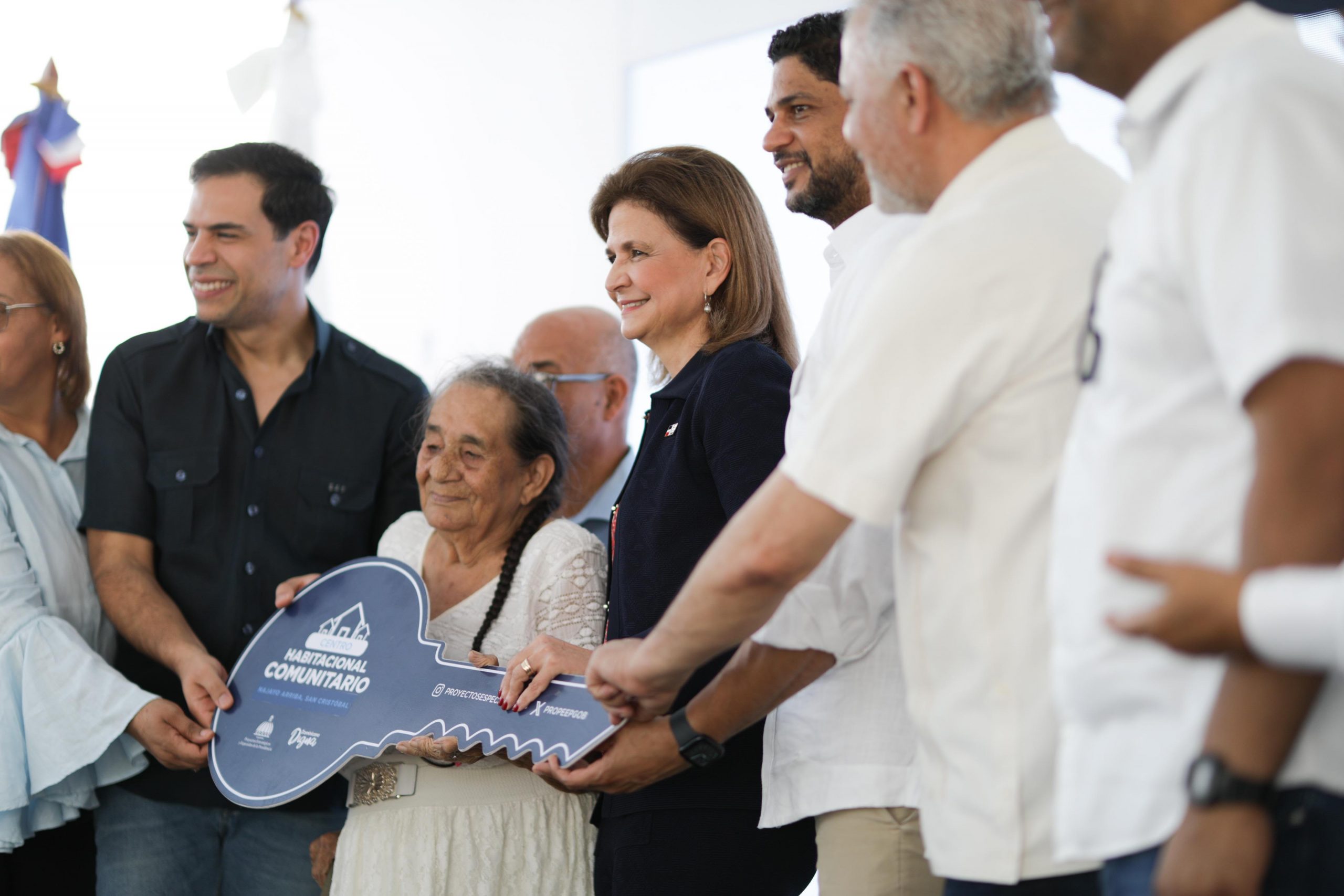 NAJAYO, San Cristóbal.- La vicepresidenta Raquel Peña inauguró este domingo el Centro Habitacional Comunitario Najayo Arriba, en la localidad del mismo nombre de la provincia San Cristóbal, entregando 50 viviendas ecoamigables a igual número de familias que habían perdido sus hogares tras el paso del huracán George en 1998.