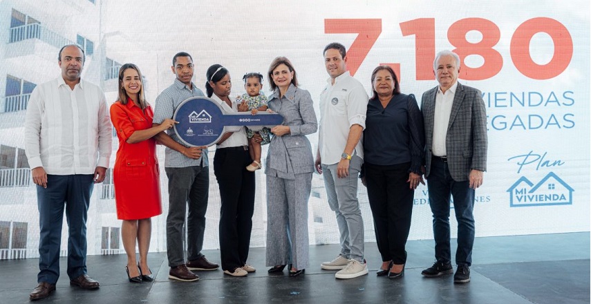 En el mismo distrito municipal, la vicepresidenta Raquel Peña y el ministro Carlos Bonilla hicieron entrega de 124 nuevos apartamentos a igual número de familias, como parte del Plan Mi Vivienda que el MIVED desarrolla en esa zona.