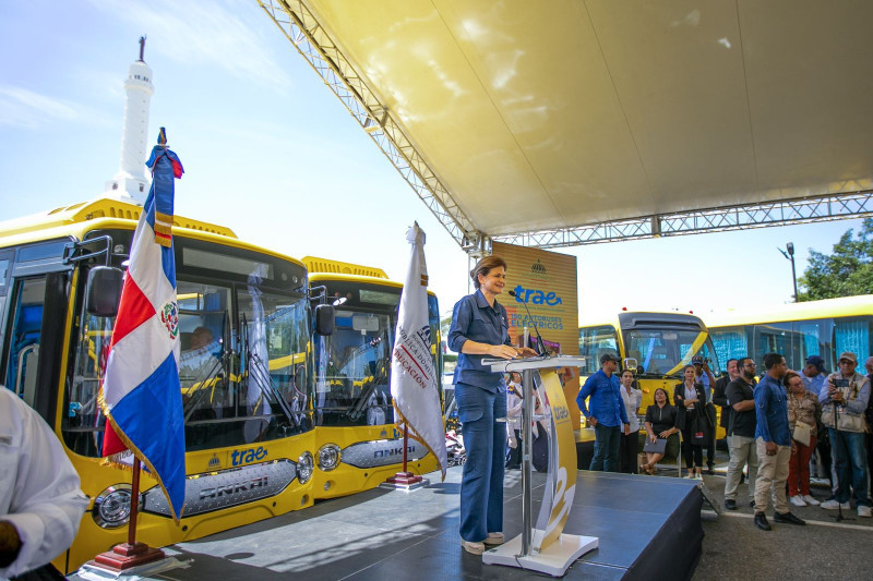 La vicepresidenta Raquel Peña encabezó ayer el acto de entrega de 150 autobuses, que serán parte del Sistema Nacional de Transporte Estudiantil (TRAE), para brindar servicios en diferentes rutas escolares de la provincia Santiago.