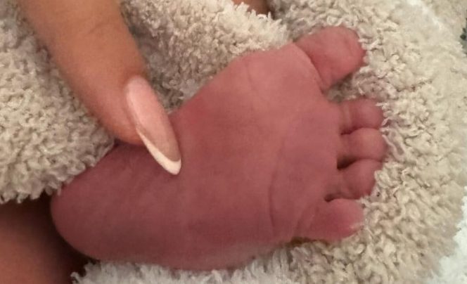 La pareja anunció el nacimiento de su primogénito, Jack Blues Bieber, con una fotografía donde se ven los dedos de Hailey junto a uno de los pies del bebé.