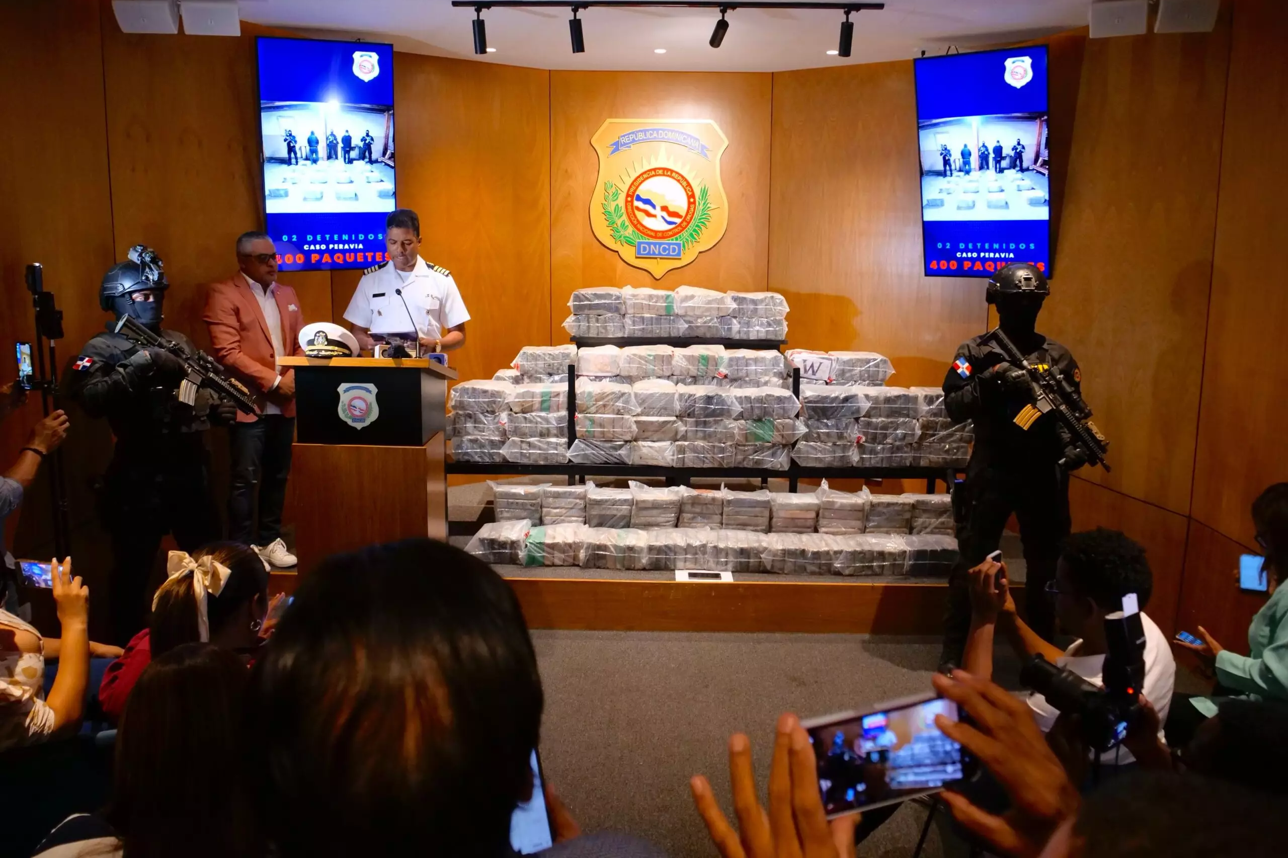 SANTO DOMINGO.- La Dirección Nacional de Control de Drogas (DNCD) ocupó 400 paquetes de cocaína frente a las costas de Baní, en la provincia Peravia.