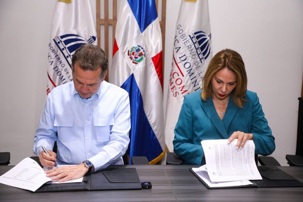 Los ministros Víctor Ito Bisonó y Milagros Germán, rubricaron el acuerdo que busca impulsar los sectores basados en la creatividad y el intelecto humano y del fortalecimiento de sus capacidades comerciales.