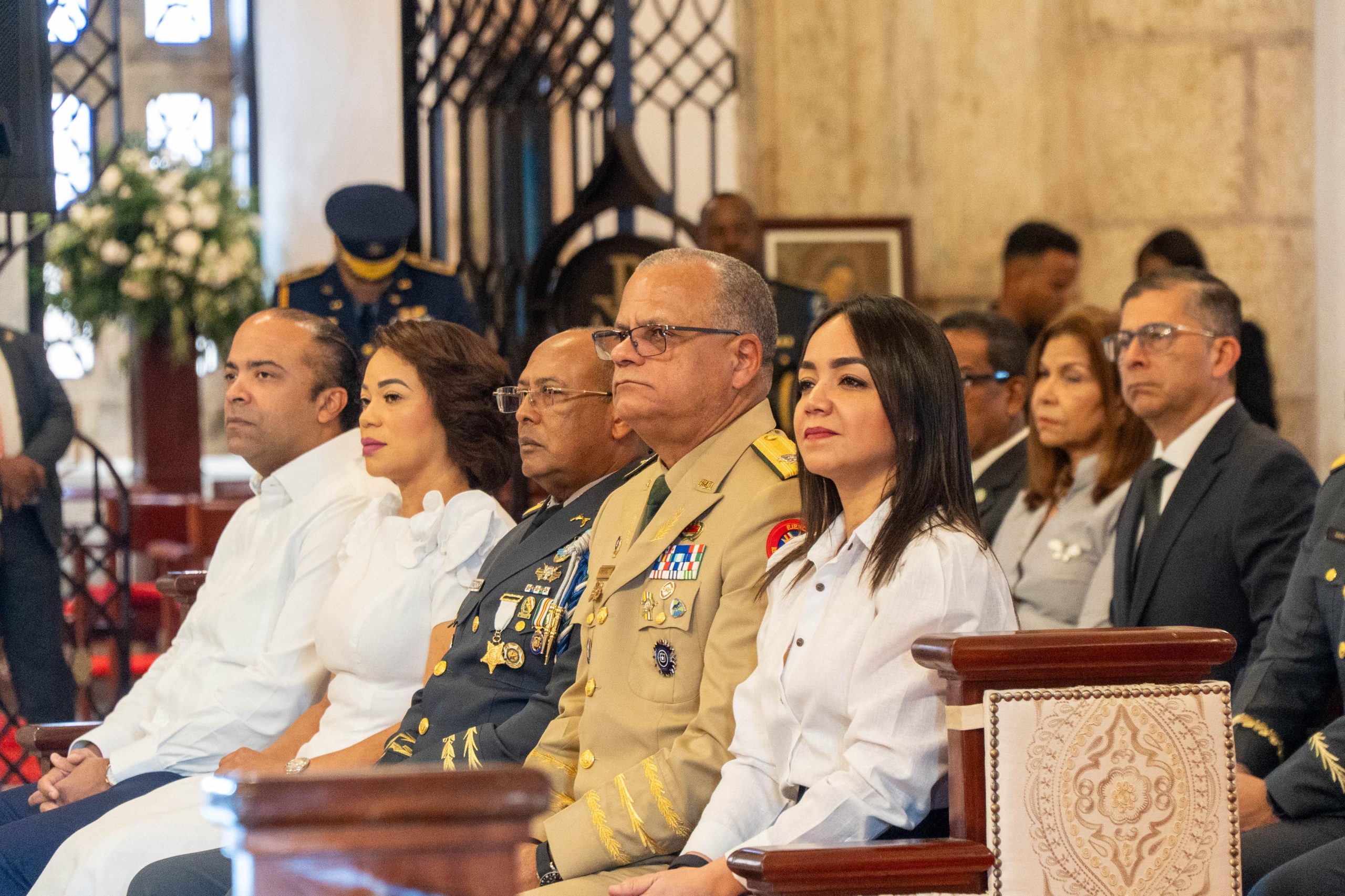 Entre los asistentes al acto religioso estuvieron el ministro de Defensa, teniente general Carlos Fernández Onofre (ERD), altos mandos militares y policiales, exdirectores de la Policía Nacional, la procuradora adjunta Yeni Berenice Reynoso, el comisionado ejecutivo para la reforma policial, Luis Ernesto García Hernández, la coordinadora de la Comisión Educativa, Mu-kien Sang Ben, y Servio Tulio Castaños Guzmán, miembro de dicha comisión, entre otras personalidades.