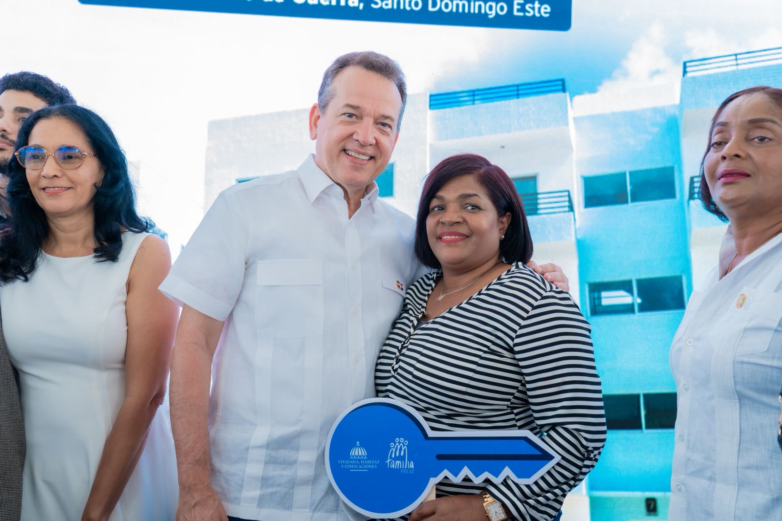 Santo Domingo Este. – El presidente Luis Abinader encabezó la entrega de 144 apartamentos del proyecto Residencial Laderas del Este, acompañado por el ministro de Vivienda, Hábitat y Edificaciones, Víctor- Ito- Bisonó, como parte de la ejecución del programa de viviendas Familia Feliz.