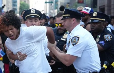 El evento estaba programado para concluir en la calle 59 Oeste, en los alrededores del Parque Central, pero la intervención policial lo empujó hasta la calle 52, siete cuadras antes de la meta debido a la situación.