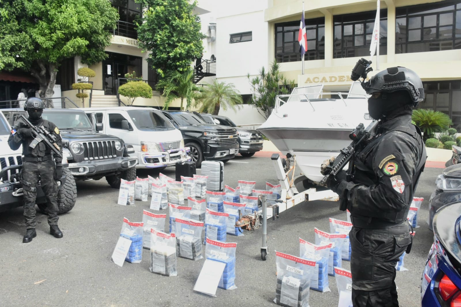 En una primera operación, las autoridades apresaron a tres hombres y desarticularon una estructura de narcotráfico a la que ocuparon 145 paquetes presumiblemente cocaína, 10 vehículos (entre ellos, dos minibuses), jeepetas, carros, un bote y dinero en efectivo, entre otras evidencias.
