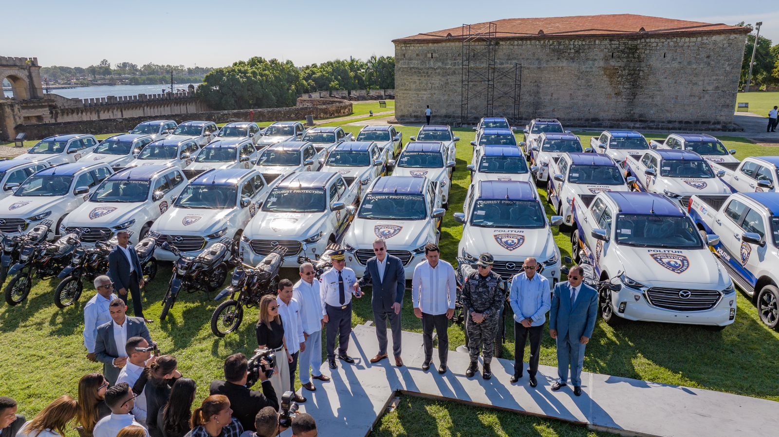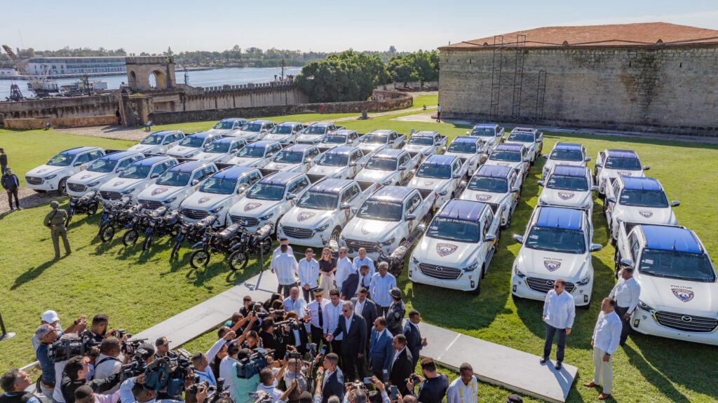 Las 35 camionetas y los 30 motores fueron entregados al jefe de la Policía Turística, general Minoru Matsunaga, durante un acto que se llevó a cabo en la fortaleza Ozama de la Ciudad Colonial.