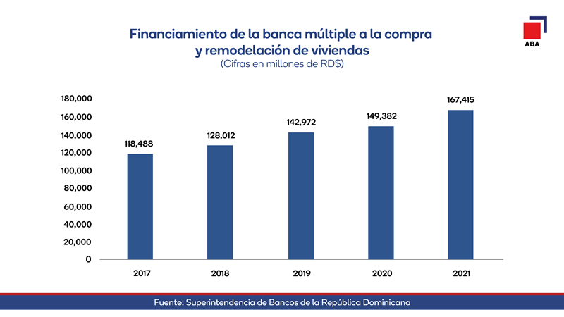 Los préstamos de los bancos comerciales para adquisición y remodelación de viviendas aumentaron en RD$18 mil millones en 2021, para un crecimiento de 12% de esta cartera con respecto a 2020.