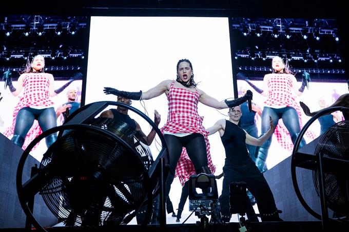 Durante una hora y cuarto, Rosalía deslumbró con un espectáculo visual apabullante en el que cantó, tocó al piano y bailó sin descanso.