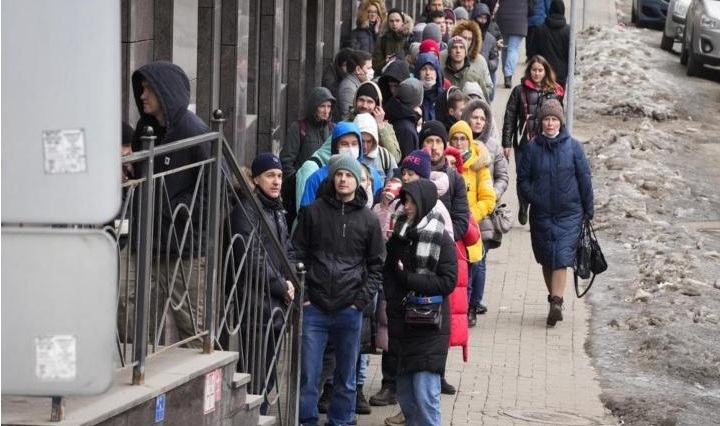 Los rusos, cautelosos de que las sanciones supongan un golpe paralizante para la economía, han estado acudiendo en masa a los bancos y cajeros automáticos durante días, con informes en las redes sociales de largas filas y máquinas agotadas. La gente en algunos países de Europa central también se apresuró a retirar dinero de las subsidiarias del Sberbank, de propiedad estatal de Rusia, después de que se vio afectado por sanciones internacionales.