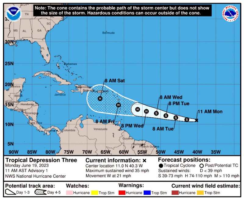 Sobre el trayecto pronosticado, Bret, debe estar acercándose a las Antillas Menores a finales de esta semana.