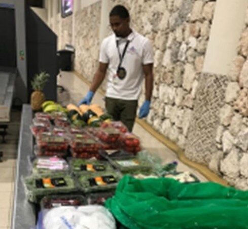 Punta Cana, La Altagracia-. Técnicos del servicio de Inspección de Cuarentena Vegetal (AIPC) del Ministerio de Agricultura en el aeropuerto Punta Cana, decomisaron un alijo de frutas y vegetales que un artista de renombre internacional intentó entrar por la terminal aérea.